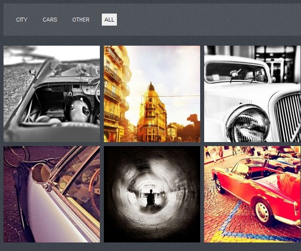 Полезный плагин, который сортирует картинки по их типу, например: только машины, или только цветы, при нажатии на «все» высвечиваются все картинки.