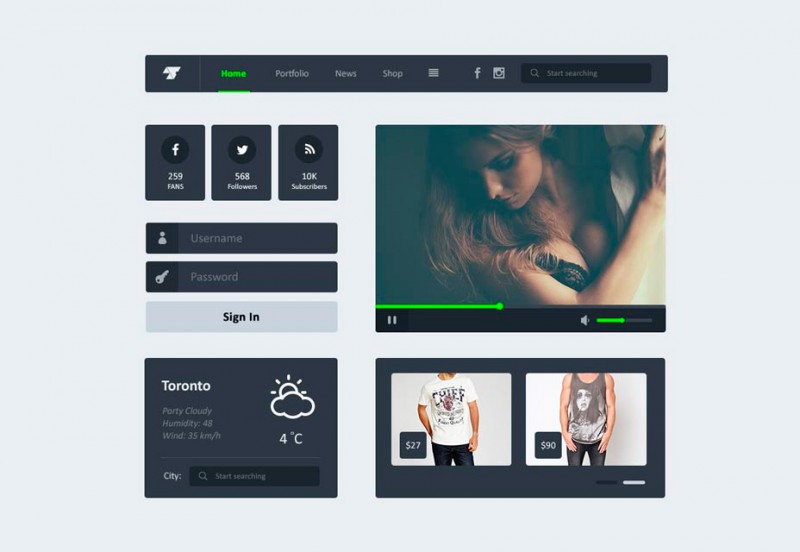 - Красивые и правильно оформленные UI элементы в формате PSD