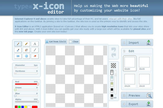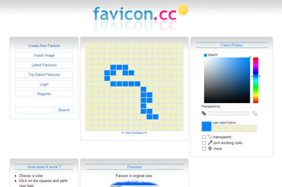 Это наверное самый популярный в мире генератор фавиконов. Тут Вы можете как нарисовать сами картинку, так и сделать фавикон из любой загруженной картинки. Конечно же есть все функции которые помогут Вам создать очень красивую картинку без труда.