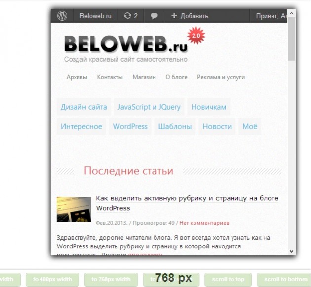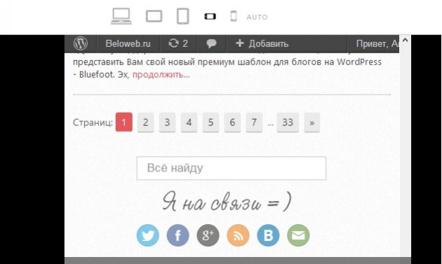 Вот и всё, дорогие друзья, теперь Вы можете проверить сайт на адаптивность. Если Вы уже заметили, что блог beloweb.ru тоже имеет адаптивный дизайн и его очень удобно читать на мобильных устройствах. :-)