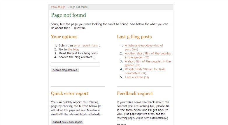404 страница является одним из самых недооценённых аспектов любого веб — дизайна. Так же сейчас популярна тенденция создания страницы ошибки с небольшим юмором, это делается для того чтобы не много смягчить раздражённость пользователя, который не получил нужную ему информацию.