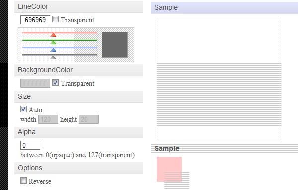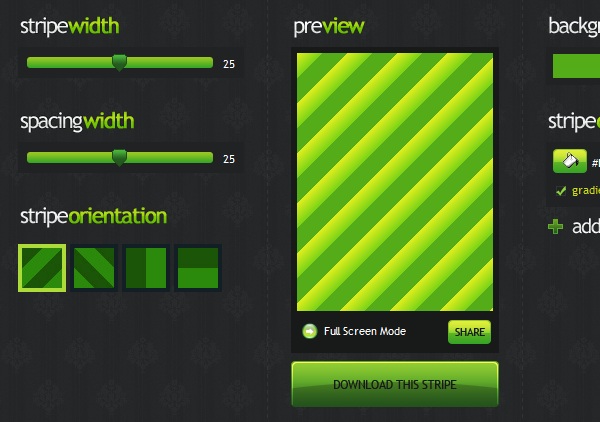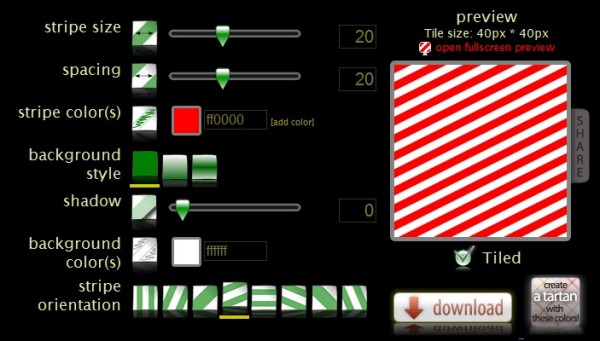 После того как Вы перейдёте на сайт, Вашему вниманию представятся несколько настроек. Их не сильно много, но этого хватит чтобы сделать классный полосатый бесшовный фон для сайта.