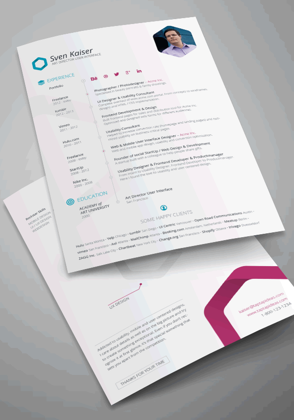 Здравствуйте, друзья! Сегодня я представляю Вам очередную часть с крутыми и современными резюме, которые можно очень просто скачать и использовать для презентации своих работ, а так же не большого рассказа о себе.