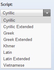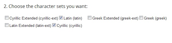Для начала нужно перейти на саму страницу, она находится здесь. Затем в нижнем левом углу нужно выбрать тип шрифта, выбираем Cirillic (русскоязычные).