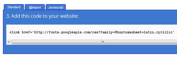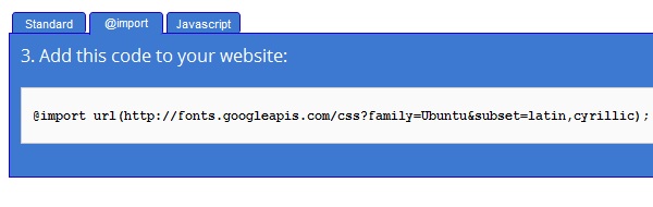 Здесь мы прикрепляем шрифты с помощью тега @import. Опять же копируем код и вставляем его в самом верху в Ваших стиля CSS.
