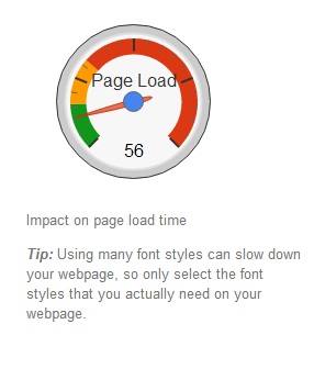 На той же странице у нас есть шкала с тремя делениями. Эта шкала показывает как данный шрифт нагружает Ваш сайт. Если стрелочка на зелёной шкале, тогда нагрузка не значительная.