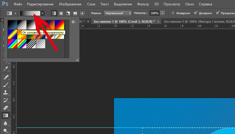 Ну а сейчас нам нужно в палитре цветов выбрать чёрный цвет, после этого выбрать инструмент «Градиентная заливка».