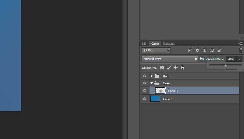 Тень получилась немного тёмная. Меняем наложение слоя на «Мягкий свет», и просто уменьшаем процент прозрачности и всё: