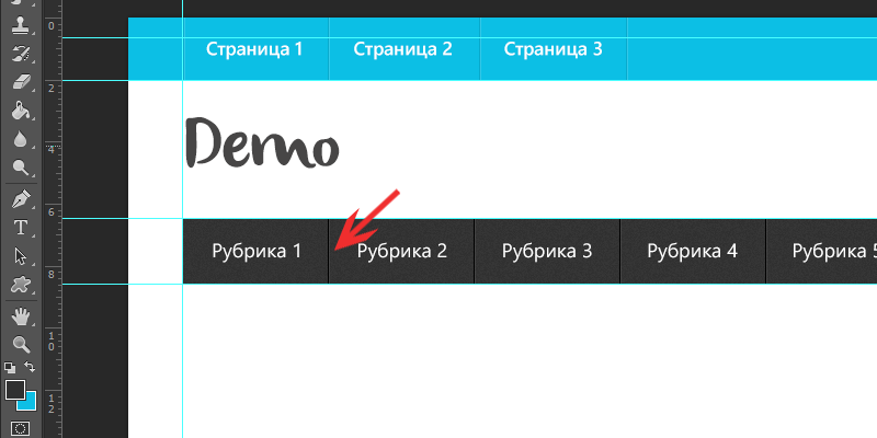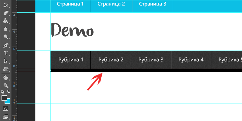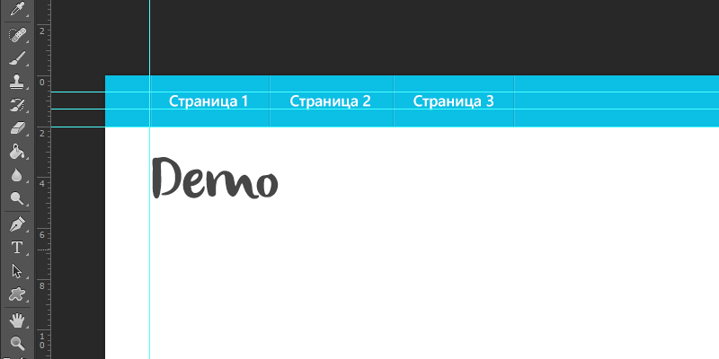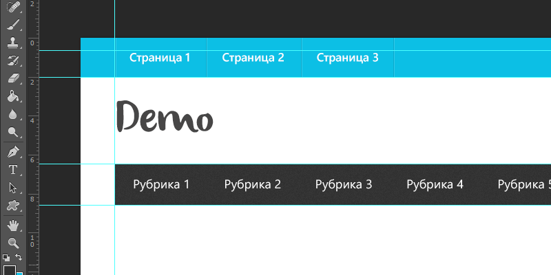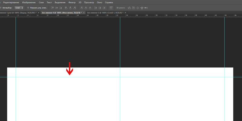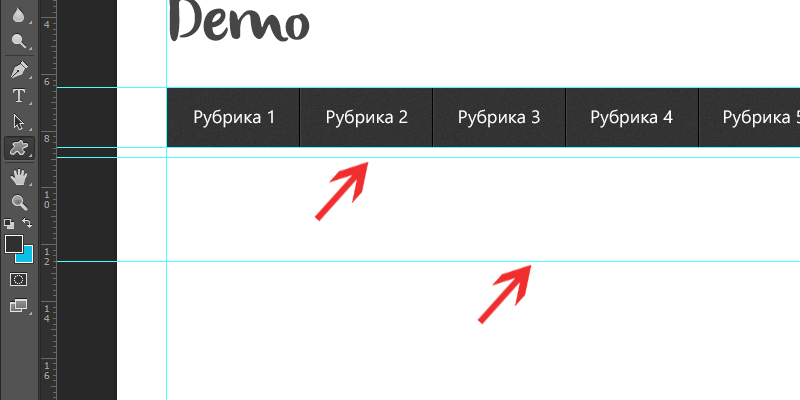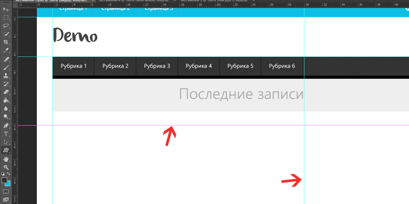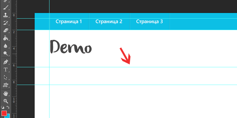 Для начала добавляем полосы с линейки как на рисунке ниже: