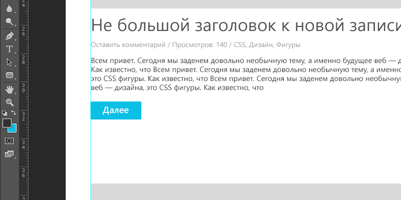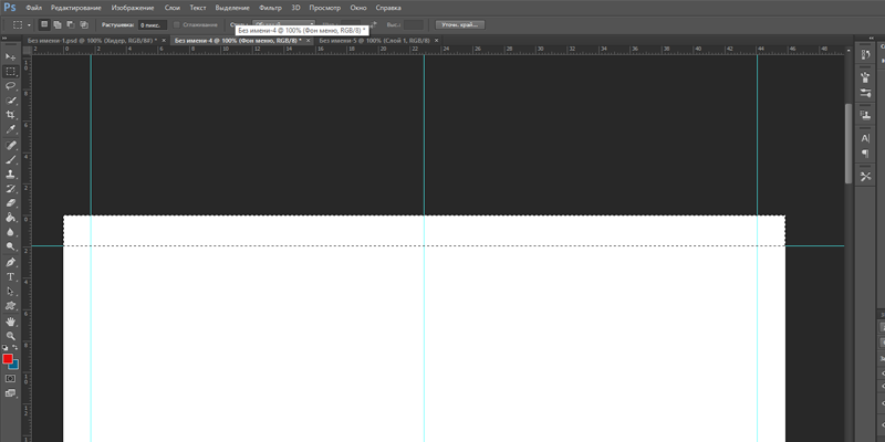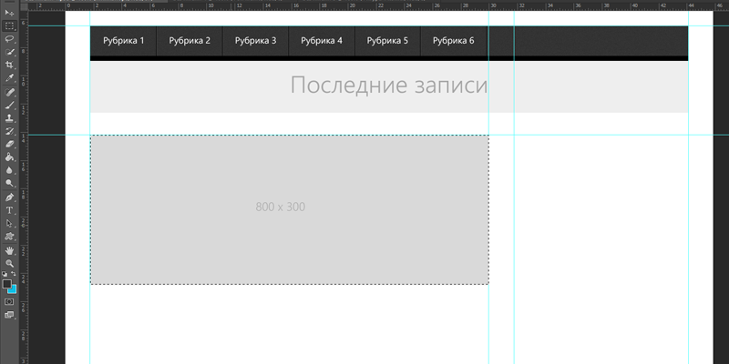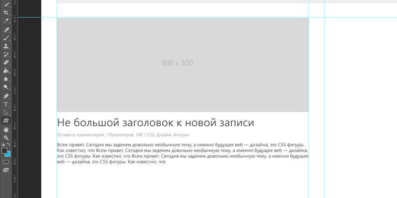 Теперь мы практически полностью подготовили наш документ. Мы узнали середину, а так же обозначили точный размер за который не нужно вылазить. Теперь переходим к самому интересному, а именно к созданию дизайна сайта (макета).