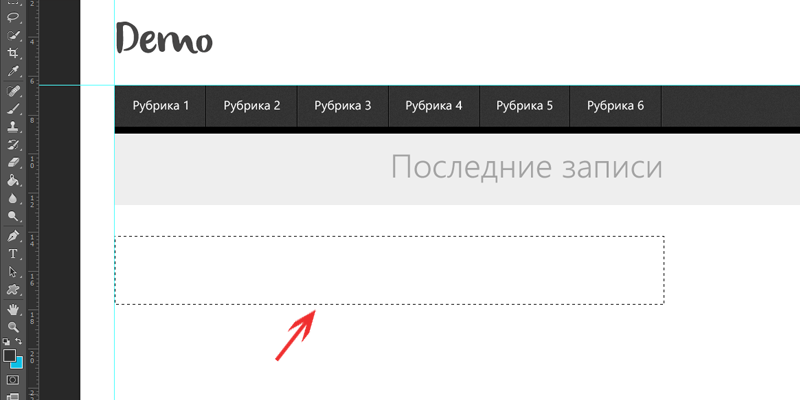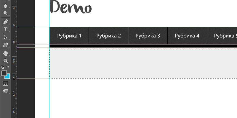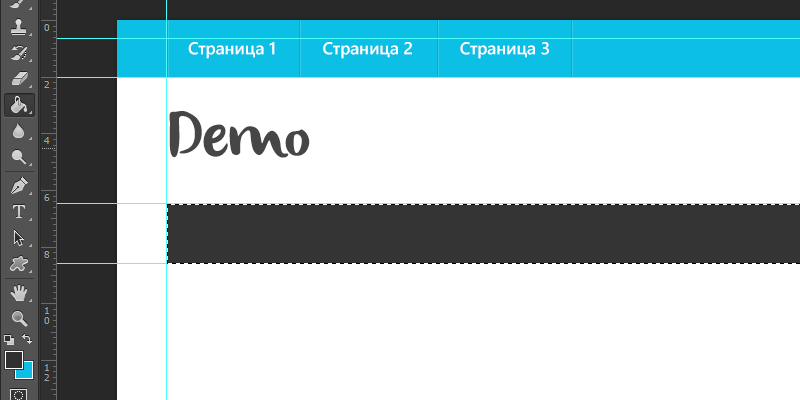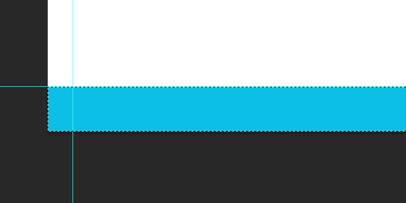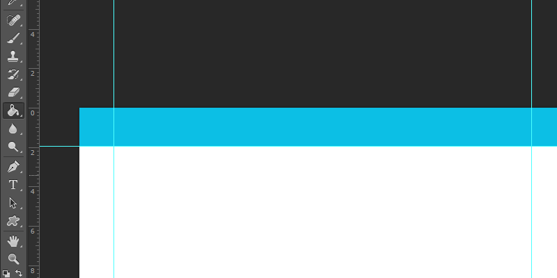 Всё как обычно создаём группу «Футер» и слой в ней. И размечаем его с помощью линейки, выбираем наш уже любимый инструмент «прямоугольная область» выделяем его и заливаем #0dbfe5