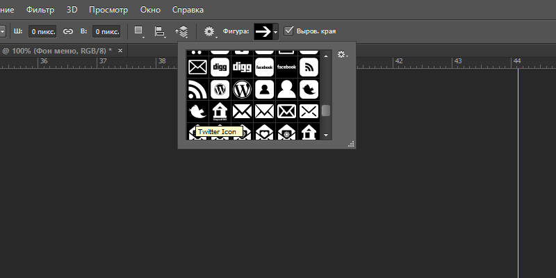 Потом создаём группу, называем её «Социальные закладки», создаём в ней новый слой. Теперь кликаем по инструменту «Произвольная фигура» выбираем нужную фигуру: