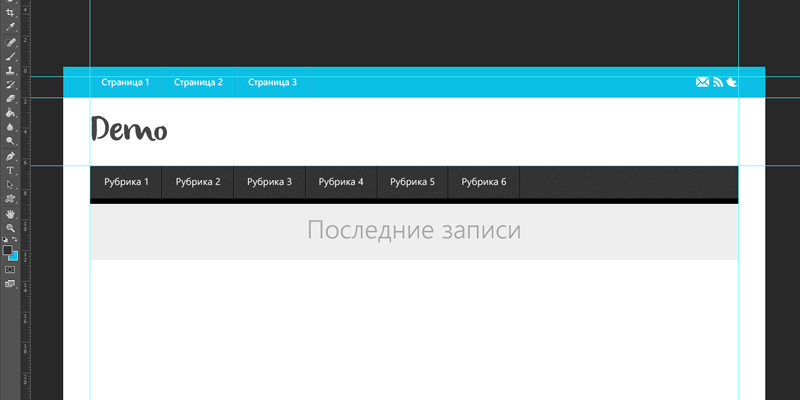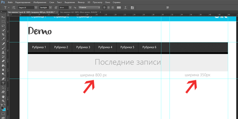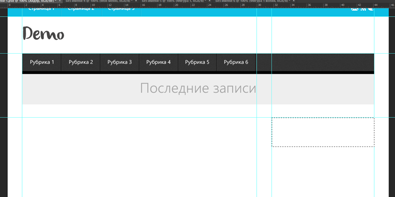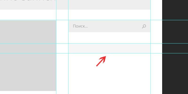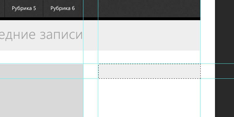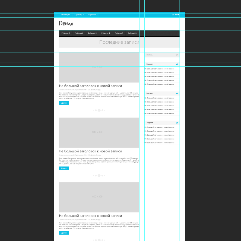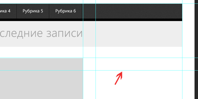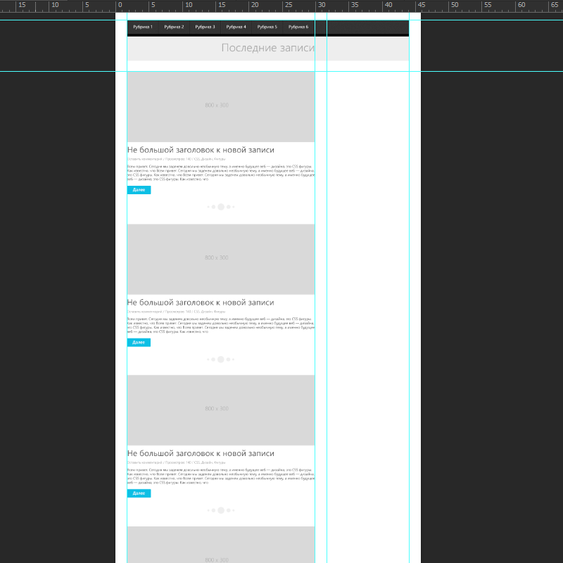 Переходим к разметке середины нашего будущего сайта. Нам нужно с помощью линейки разметить где будут находиться блоки постов и блок сайтбара (Правой колонки).