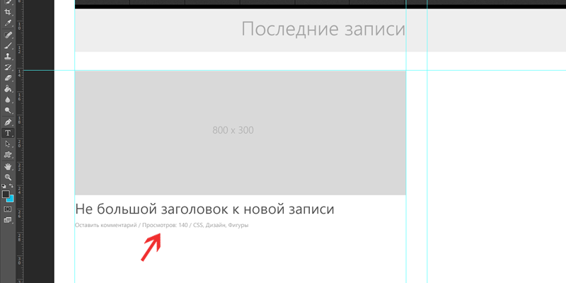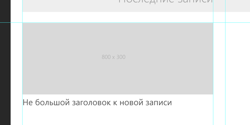 Отменяем выделение, берём «Горизонтальный текст» изменяем размер шрифта на 48 пт и цвет #a4a4a4. Пишем «Последние Записи». Вот, что у Вас должно получиться в итоге: