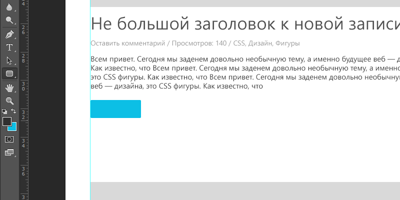 Сейчас давайте добавим кнопку Далее. Она тоже очень простая. Выбираем инструмент «Прямоугольник со скругленными углами» задаём ему вот это цвет #0dbfe5 и радиус углов в 2рх. И рисуем кнопку размера который Вам понравится: