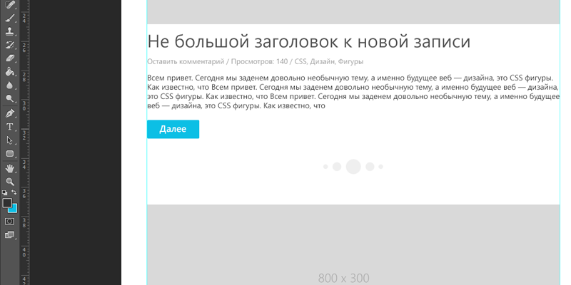 Опять выбираем инструмент «Прямоугольная область». В стиле задаём размеры 800 х 300. Подгоняем под линии. Потом заливаем вот этим цветом #d9d9d9. Это у нас получилась миниатюра.