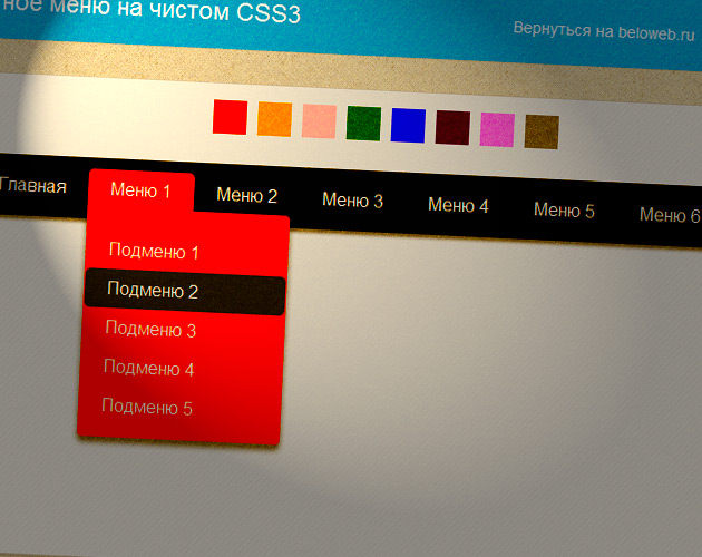 Выпадающее и цветное меню для сайта на чистом CSS3
