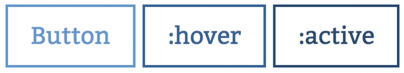 На этом изображении показано три состояния кнопки, обычное (по умолчанию), при наведении и при клике или же действии: