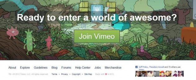 Сайт vimeo.com скорее всего самый удачный пример плавного перехода к футеру. В данном случае фоновые изображения в шапке сайта и в футере практически одинаковы, а вот контент не много отличается. Таким образом получается своеобразный контраст, который выделяет футер и шапку сайта. Очень необычное и красивое решение, а главное удобно.