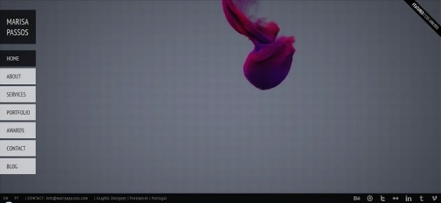 Очень креативный и удачный пример, с красивым дизайном. Тут навигация выделена чёрным цветом на сером фоне, таким образом она всегд видна и выделяется, а ещё огромный плюс, что этот не маленький блок фиксированный. В общем потеряться на этом сайте просто не возможно.