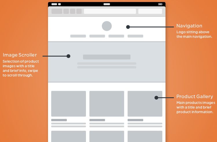 Элементы Wireframe для мобильного контента