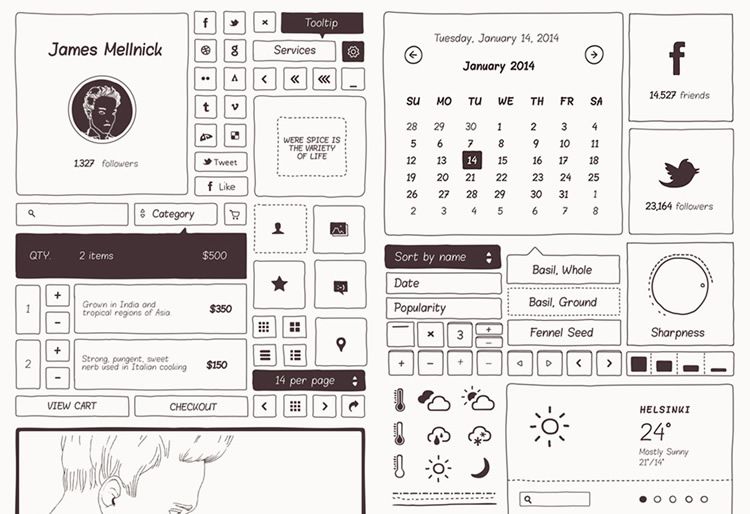 Элементы wireframe от руки