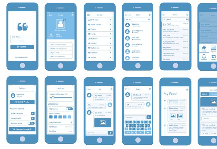Blueprint — элементы мобильного wireframe в PSD