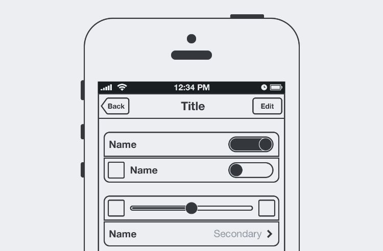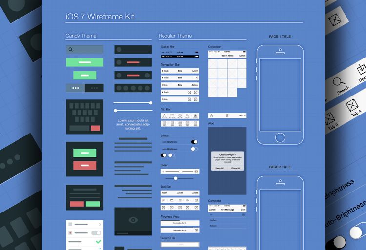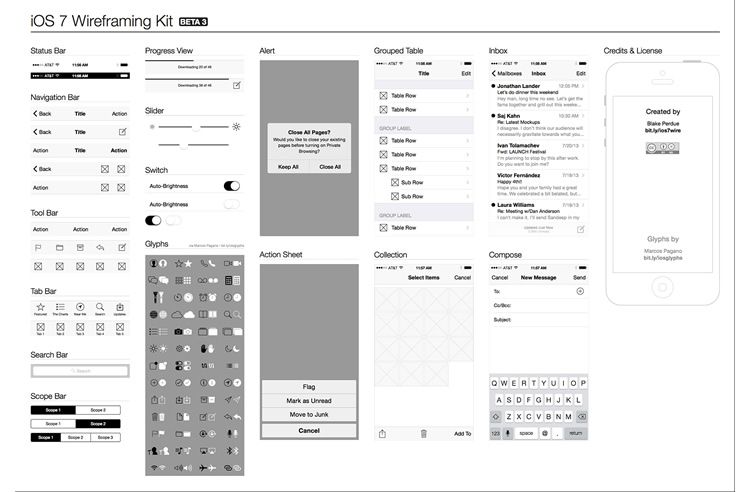Wireframe элементы от IOS 7