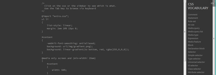 Небольшое веб приложение, которое помогает освоить CSS терминологию