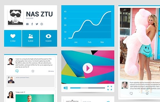 UI исходники в Flat стиле с доминирующим синим цветом