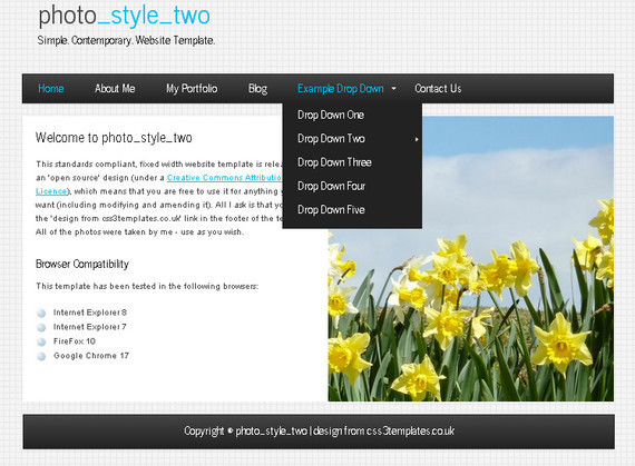 Фото шаблон с тёмным выпадающим меню