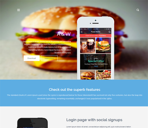 Бесплатный HTML шаблон для презентации мобильного приложения