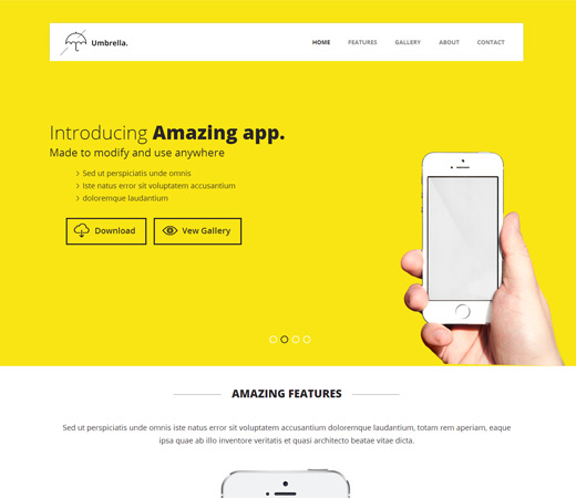 Одностраничный HTML шаблон с адаптивным дизайном — Umbrella