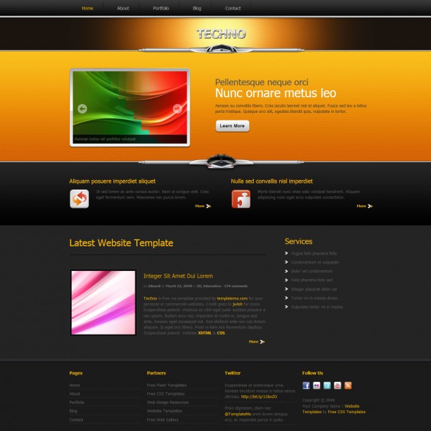 Ещё один красивый CSS шаблон в тёмных тонах — techno