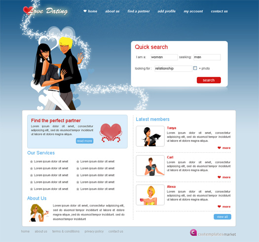 Красивый и бесплатный шаблон — Love Dating