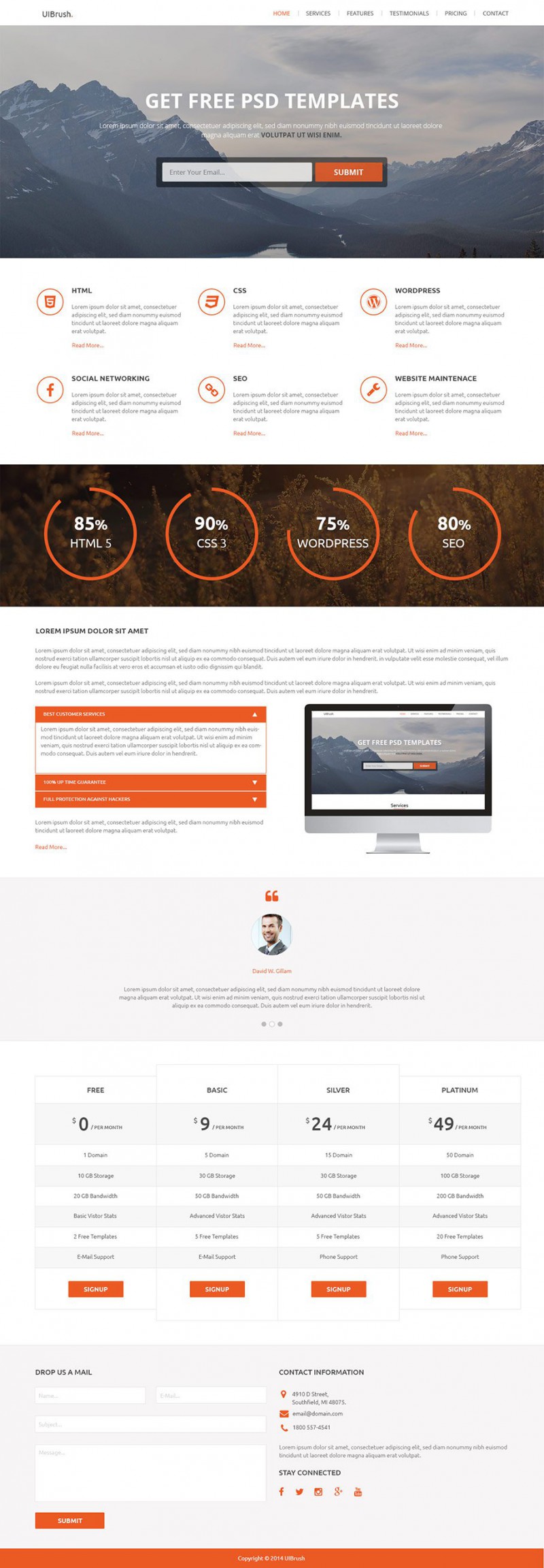 Простой и минималистический одностраничный шаблон для сайта в PSD формате