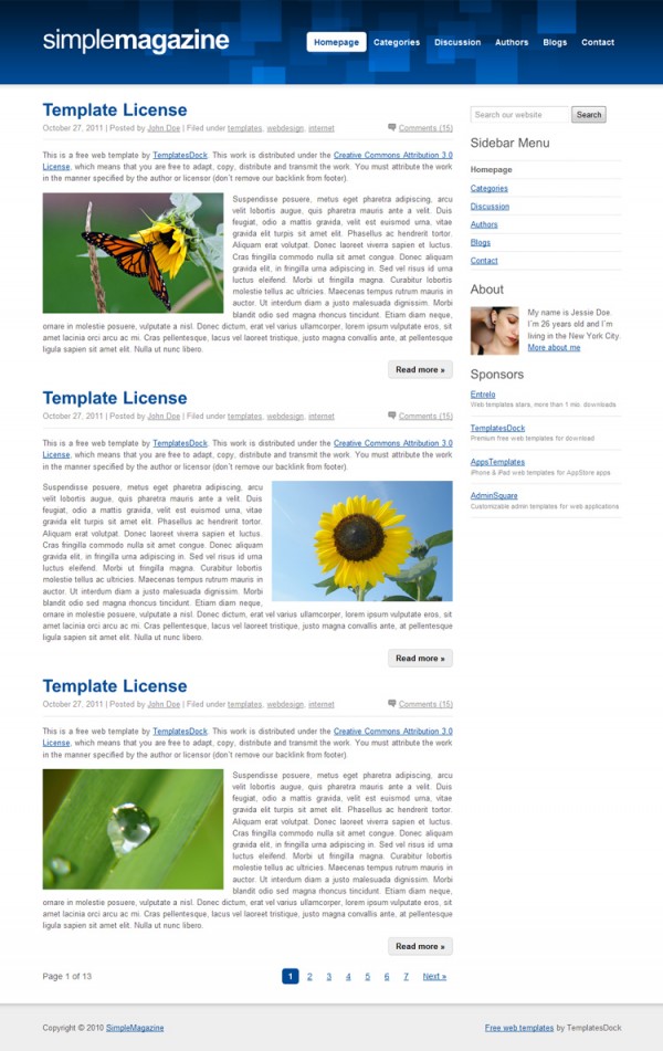 Блоговый бесплатный HTML шаблон SimpleMagazine