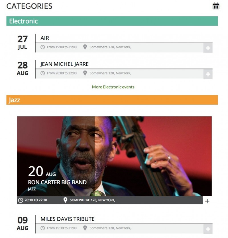 Этот плагин является полностью редактируемым календарём событий. Он действительно прост в использовании, просто нужно установить шаблон и загрузить все события на свой сайт.