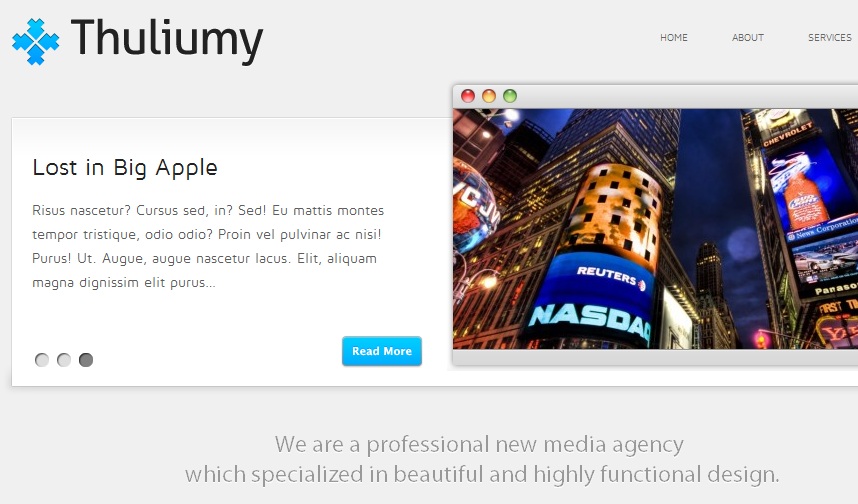 Гибкий в настройке JQuery слайдер, пользовательские виджеты на первой полосе, простота в настройке и установке. Всё это включает в себя прекрасный шаблон для WordPress — Thuliumy.