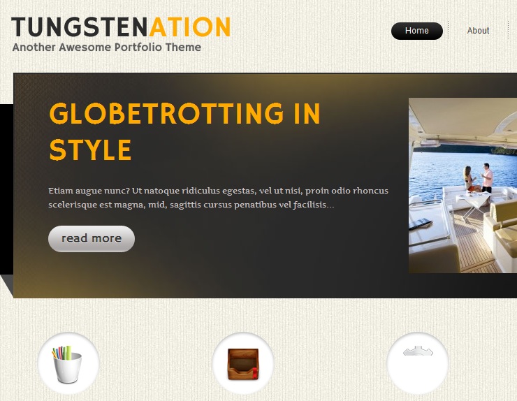 Если Вам нужен стильный и современный шаблон для бизнеса, тема Tungstenation — это то, что Вам нужно. Эта тема имеет четыре настраиваемых виджета на главной странице, они позволяют подробно предоставить пользователю важную информацию такую как услуги, свои работы, контактную информацию и многое другое. Так же встроен функциональный JQuery слайдер с многочисленными настройками.