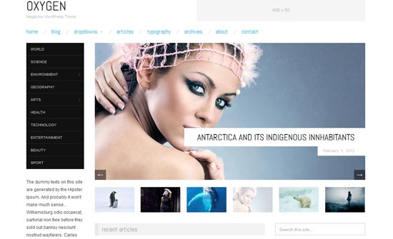 Oxygen — это замечательный шаблон с адаптивным дизайном для блогов на WordPress и с классным слайдером