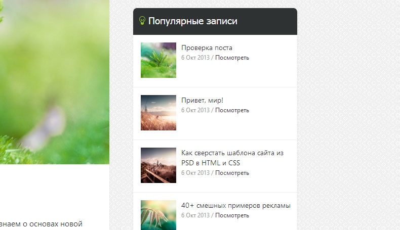 Отображение популярных записей в правой колонке блога, с возможностью отключить их.