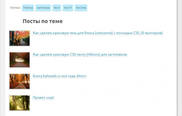 В конце поста стоят метки, а так же похожие статьи, которые определяются по меткам.
