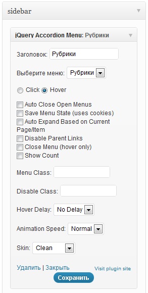 Здравствуйте, дорогие читатели блога. В этот день расскажу Вам я про превосходный плагин, который создаёт на блоге WordPress классное меню аккордеон — JQuery Accordion Menu Widget. Я сам пользуюсь этим плагинов, и естественно Вы его можете посмотреть в действии справа в рубриках. Очень удобный плагин, просто вставляешь через админку виджет и радуйся.