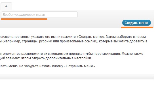 Чтобы создать произвольное меню в WordPress Вам нужно зайти в Внешний вид, а затем в Меню. Далее нужно придумать название меню, выберите какое Вам понравится:-) после нажимаем на кнопочку Создать меню.