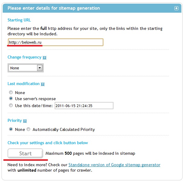 www.xml-sitemaps.com — один из таких сервисов, который генерирует карту сайта.