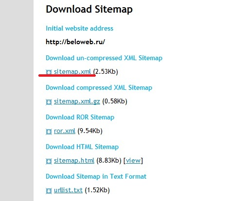 Сервис сгенирирует несколько файлов. Но нам нужен пока что только один, это sitemap.xml.
