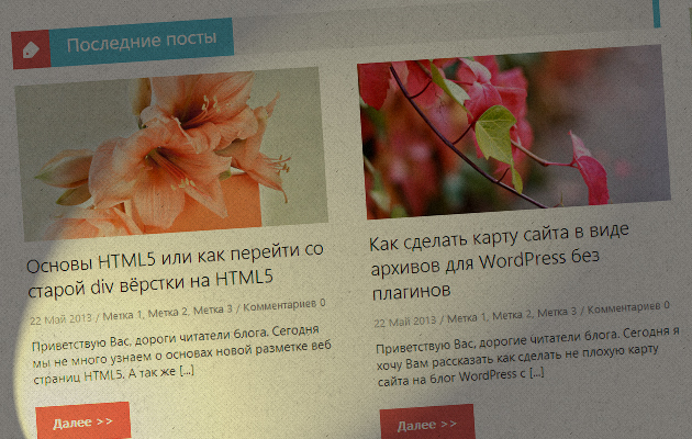 Хочу заметить, что данный способ Вы можете применить и уже на существующих шаблонах WordPress. Правда всё это реализовать будет сложнее, нужно полностью изменить стили вывода постов. Более удобно применить этот код будет на новых шаблонах.