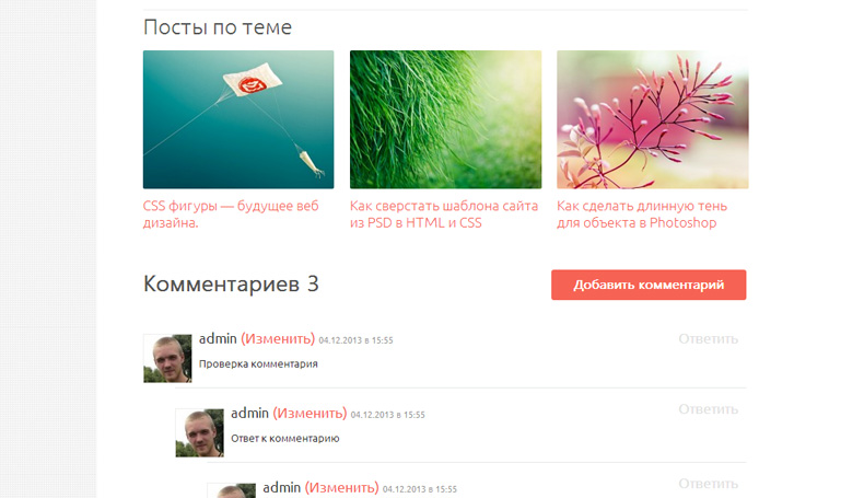 С этим шаблонов Ваши пользователи могут посмотреть похожие новости на Вашу статью, что очень удобно. А так же прокомментировать её и ответить на каждый комментарий отдельно, так как шаблон поддерживает древовидные комментарии.