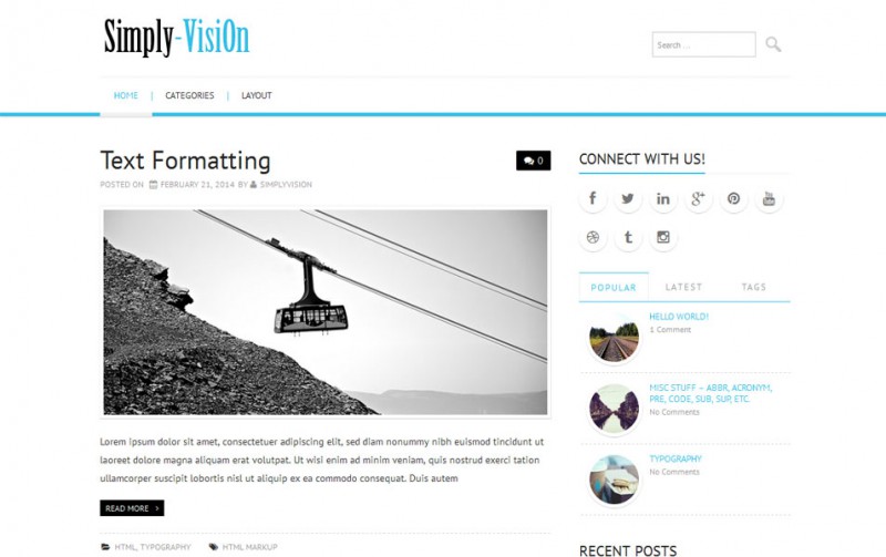 Крутой шаблон для блогов в современно минималистическом стиле — VisiOn
